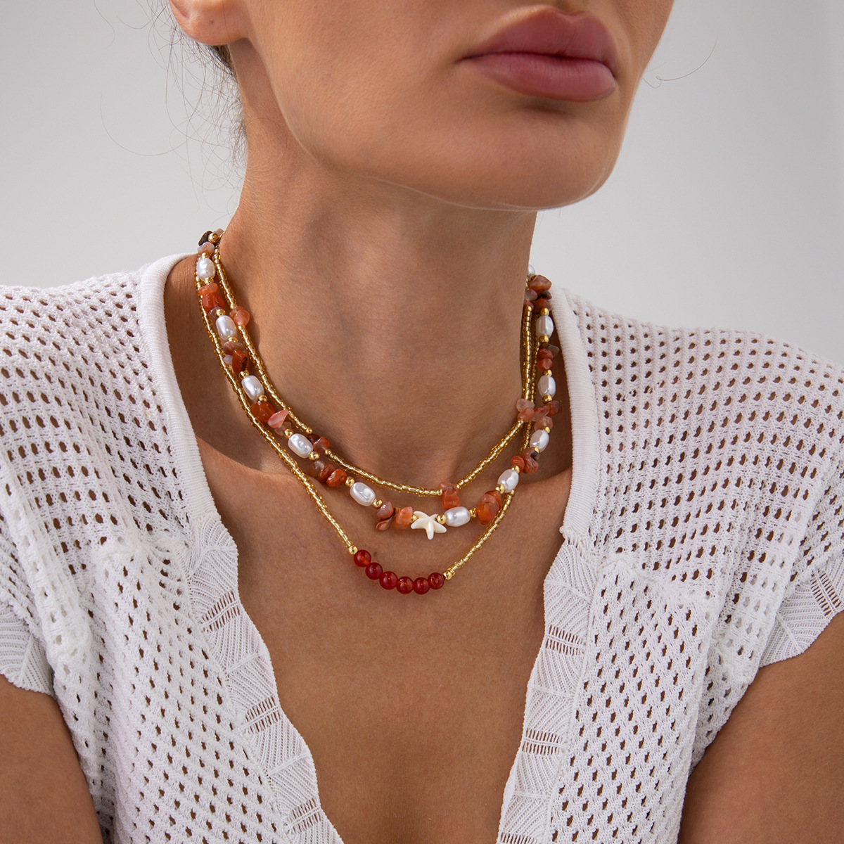 Home Necklace Fashion Sweet Pearl Starfish Necklace Personalized Irregular Turquoise Beaded Necklaces for Women Natural Gemstone rainbow