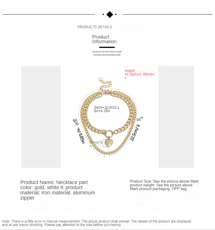 Be the first to review “Heart-shaped Can Open Pendant Neck Accessories Women Exaggerated Double-layer Simplicity Chain Necklace With Photo” Cancel reply