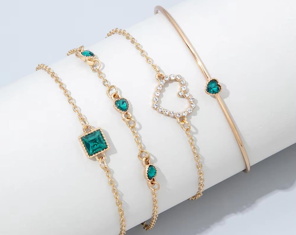 Hot Sale 4 Pcs/set Rhinestone Heart Bracelet Women Adjustable Bracelet Jewelry Gift Birthday Mother’s Day Gift