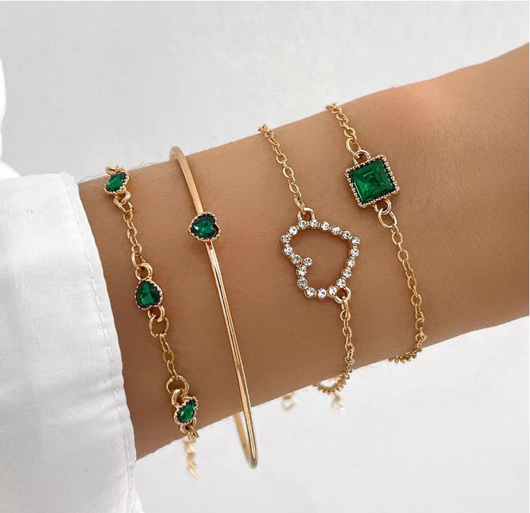 Home Bracelet Hot Sale 4 Pcs/set Rhinestone Heart Bracelet Women Adjustable Bracelet Jewelry Gift Birthday Mother’s Day Gift