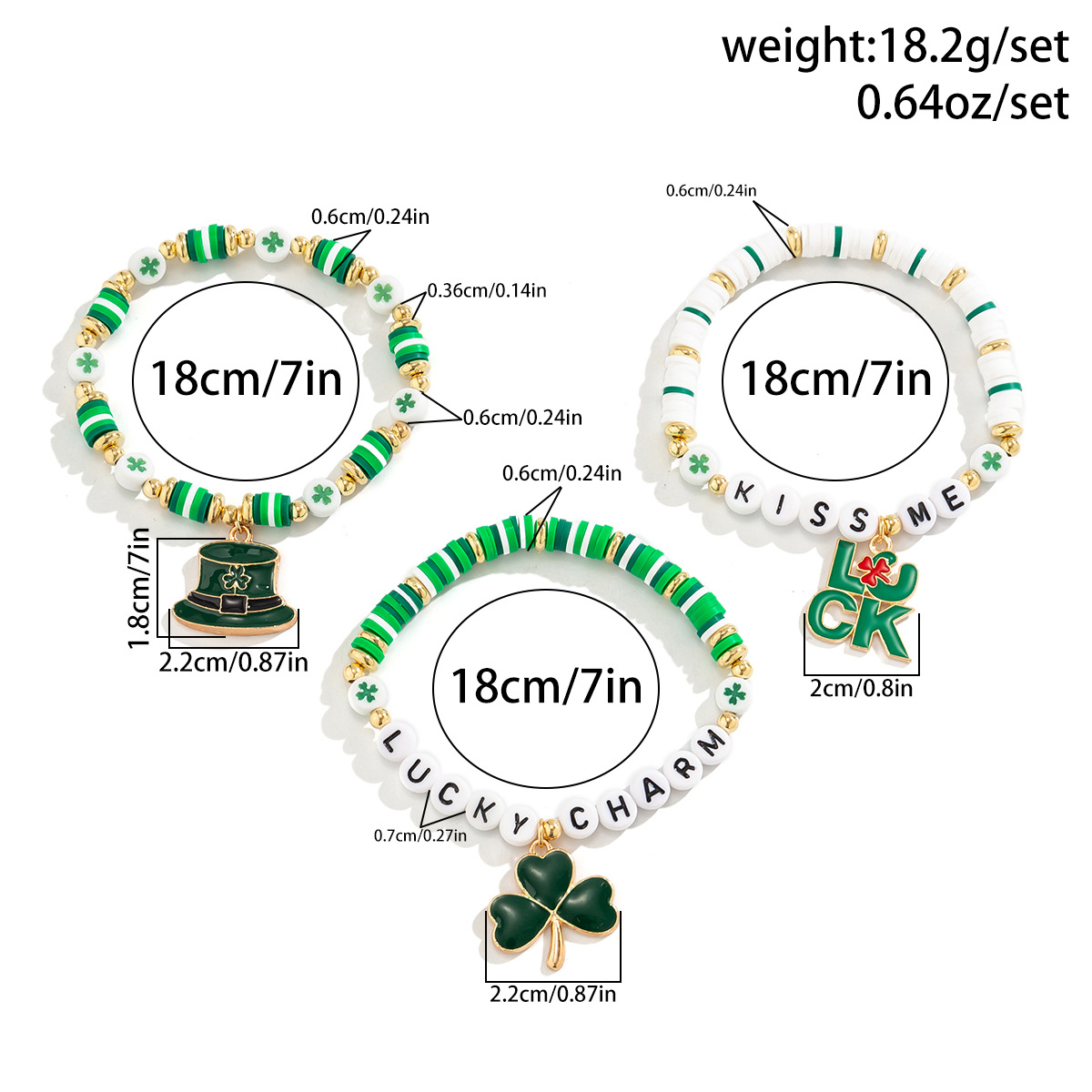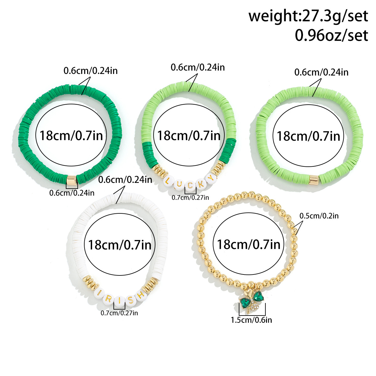 Home Bracelet Hot Sale Gold Plated Multi-Layer Fold Wear Letter Beaded Bracelet Leaf Clover Green Beaded Bracelet for Fashion Jewelry Gift