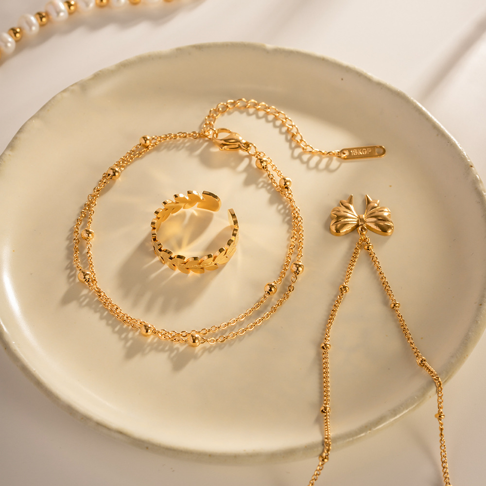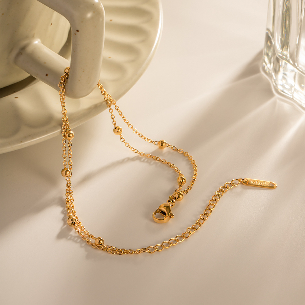 Home Bracelet INS Wind Exquisite 18K Gold Bead Chain Bracelet PVD Electroplated Stainless Steel Waterproof Double Chain Bracelet Women