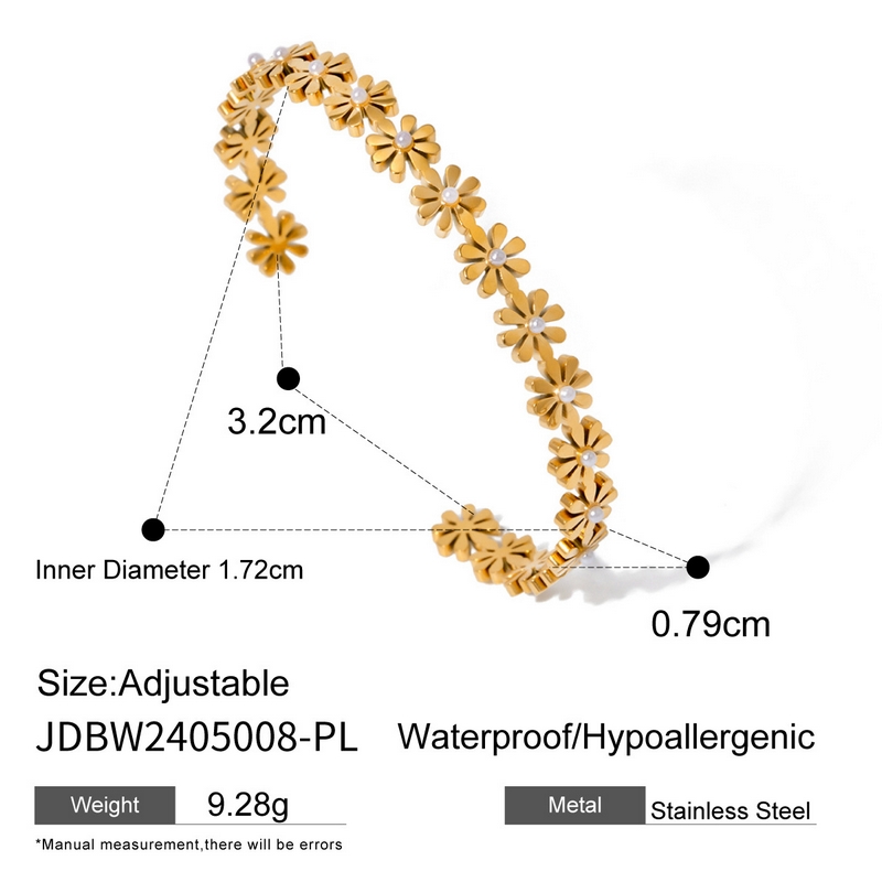 Home Bracelet Light Luxury Fashion 18k Gold Stainless Steel Daisy Pearl Open Bracelet Ins Simple Senior Zirconia Bracelet