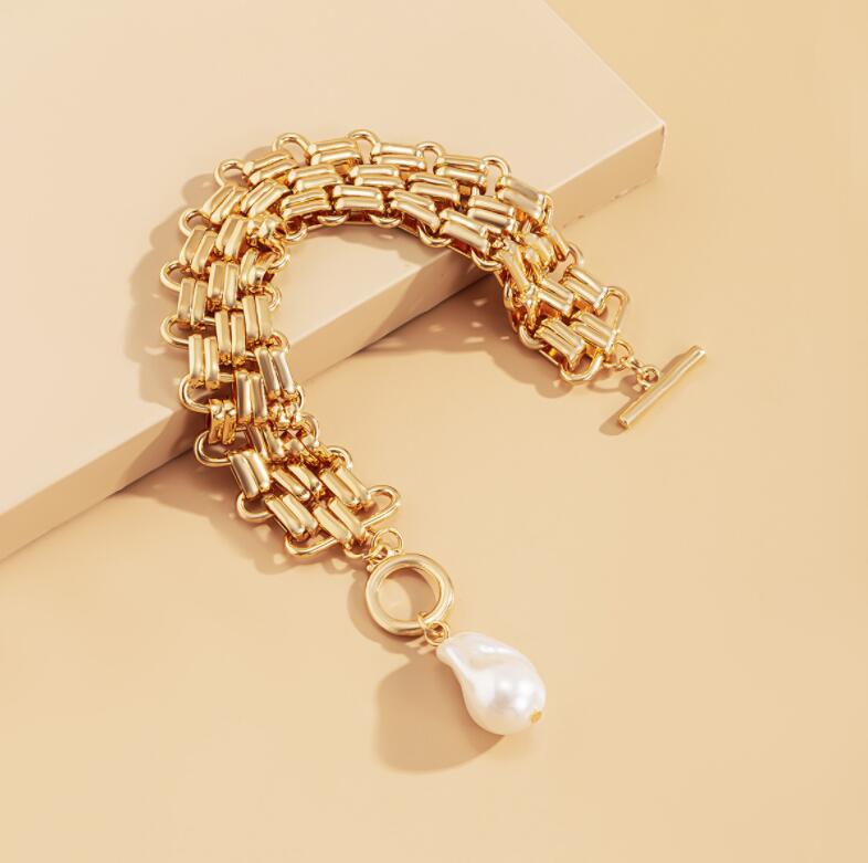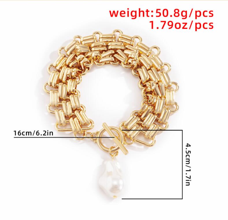 New Baroque Elbow Pearl OT Clasp Bracelet Thick Wide Metal Chain Women’s Jewelry Bracelet Pulseras Y Brazaletes