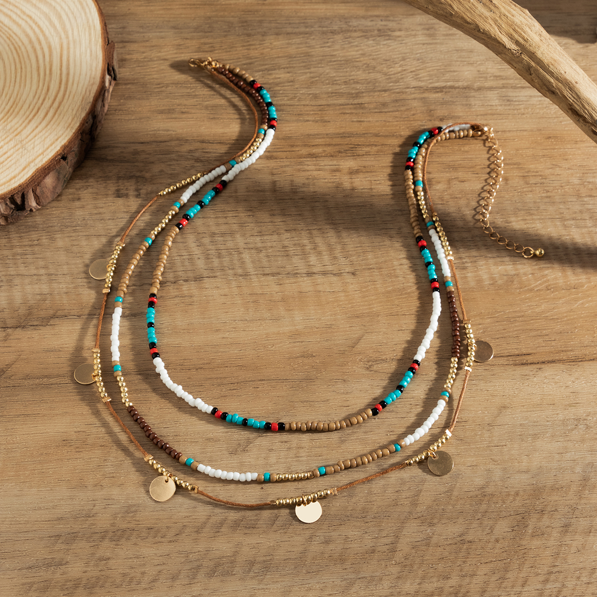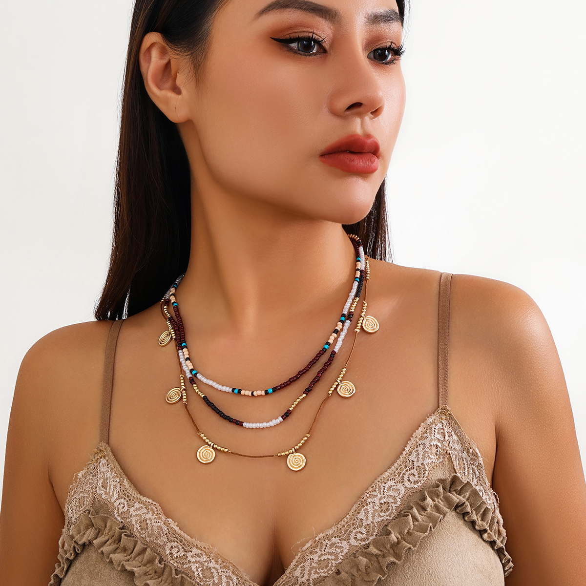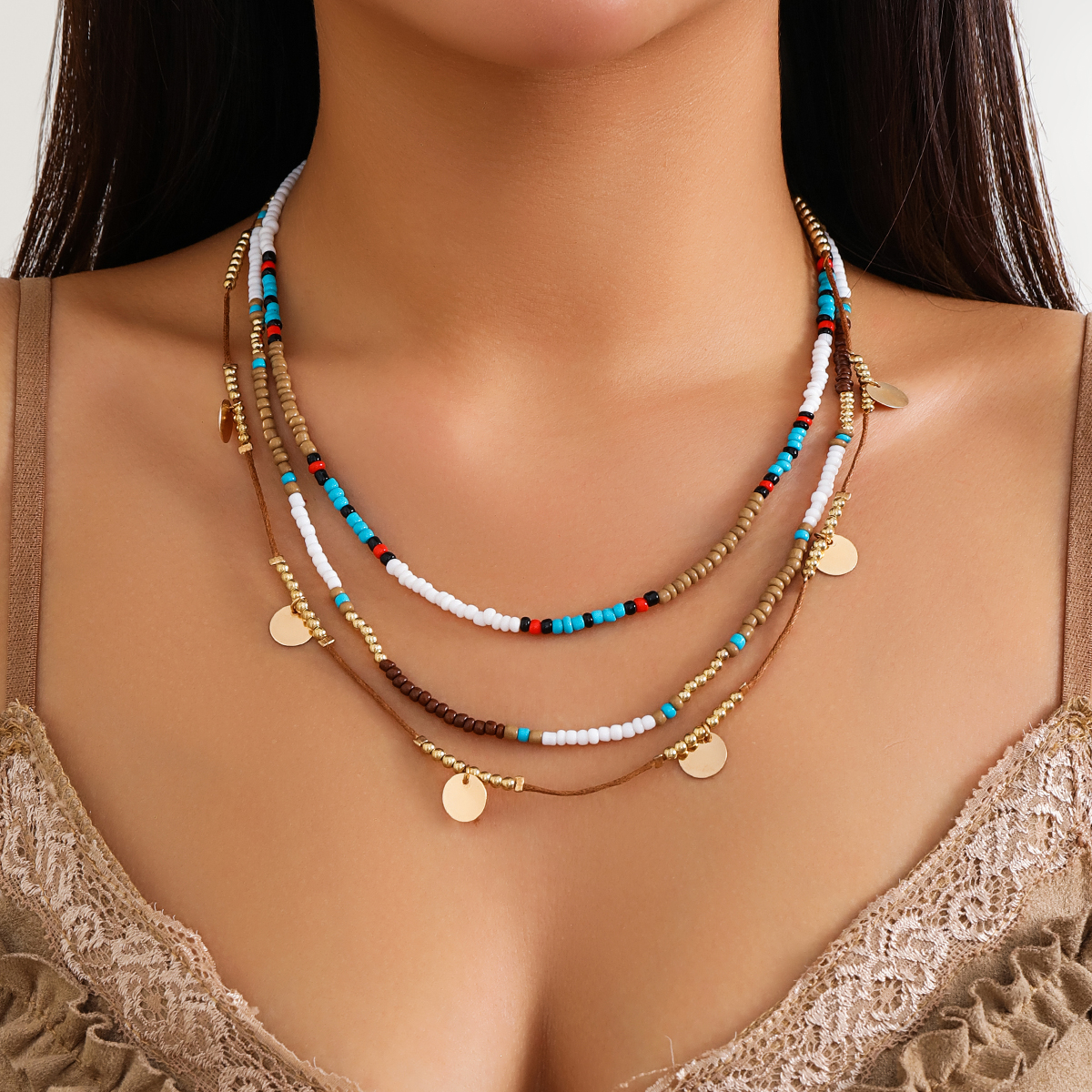 Home Necklace New Bohemian Multi-layer Seed Beads Necklace butterfly Leaf Sequins Tassel Pendant Necklace Gothic Collarbone Chain Jewelry Gift