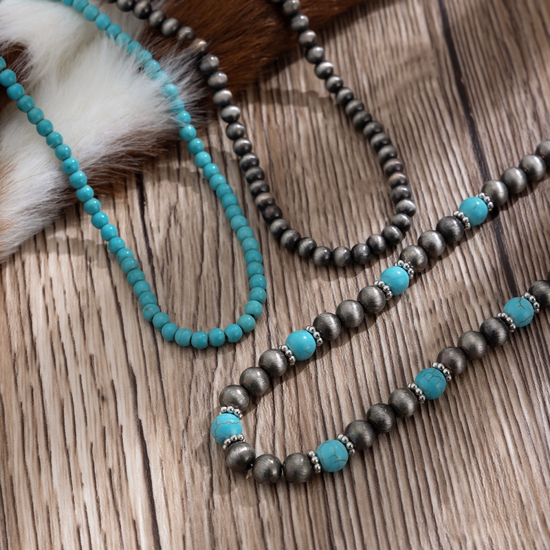 Home Necklace New Ethnic Style Handmade Beaded Necklace Vintage Turquoise Necklace Set