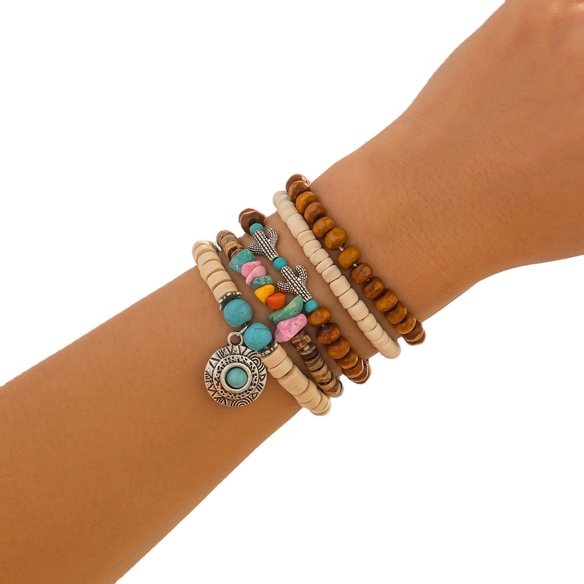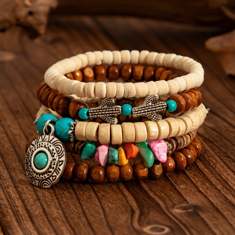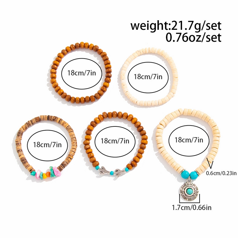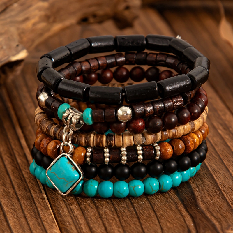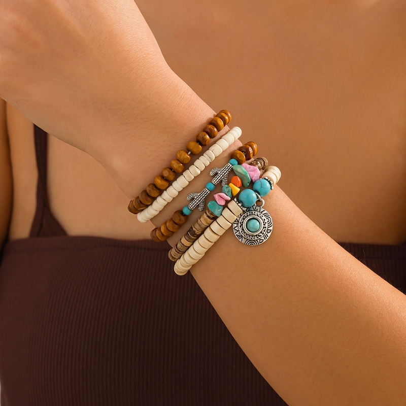 Home Bracelet New Ethnic Style Irregular Wooden Beads Beaded Bracelet Fine Beaded Bracelets Metallic Turquoise Bracelet Set