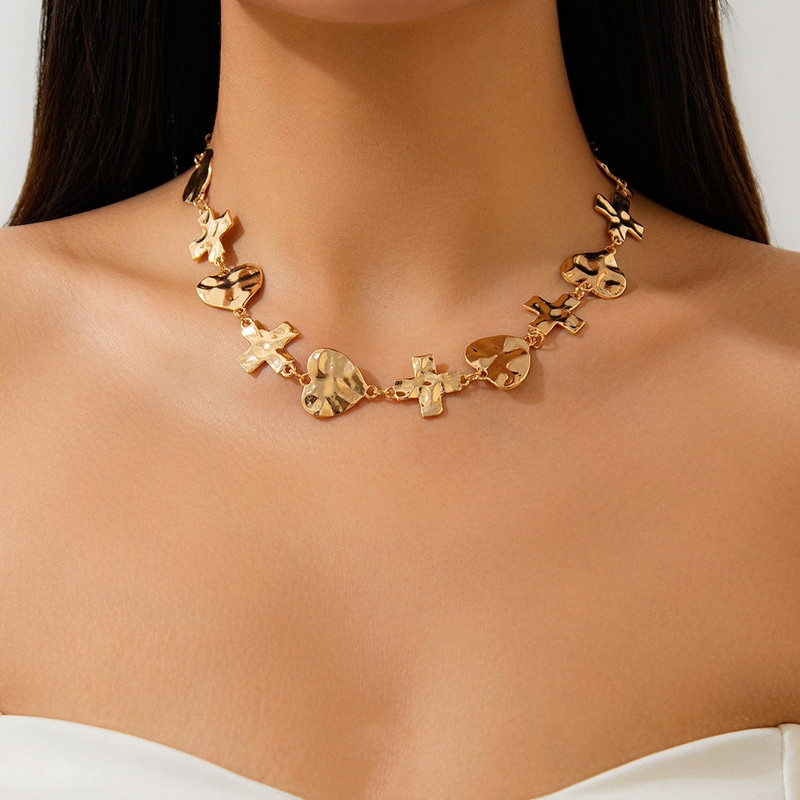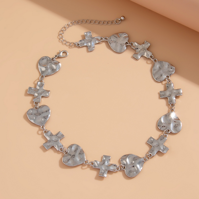 Home Necklace New Fashion Heart Cross Splicing Necklace Personalized Hundred Alloy Necklace