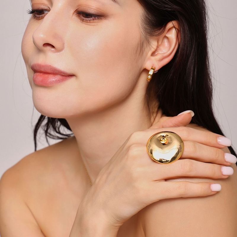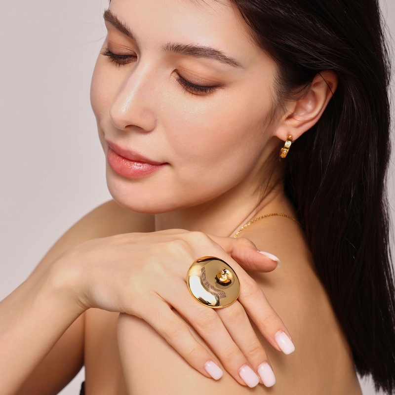 Be the first to review “New Fashion Titanium Steel Plated 18k Gold Exaggerated Large Round Swirl Opening Adjustable Ring” Cancel reply