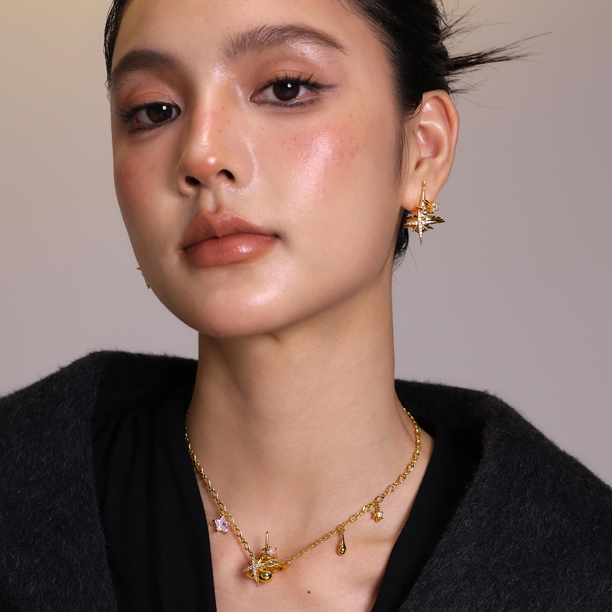 Home Earrings New Heavy Duty Niche Design Sense starburst Universe Three-dimensional Star Track Around Unique Earrings