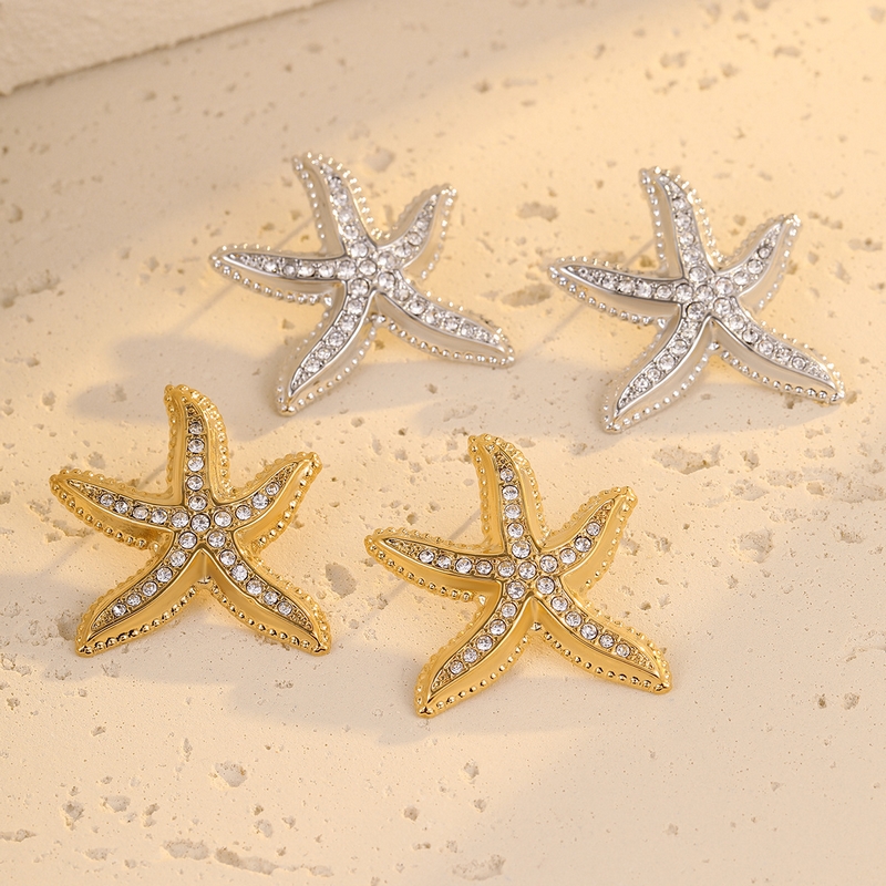 Be the first to review “New Ins Style Exaggerated Senior Sense Starfish Micro-set Zirconia Stainless Steel 18K Gold Earrings” Cancel reply