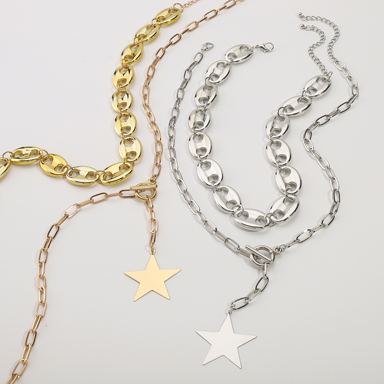 Premium Sense of Design Metal Star Pendant Necklace Fashion Personality Baita Pig Nose Chain Stacked Women’s Necklace