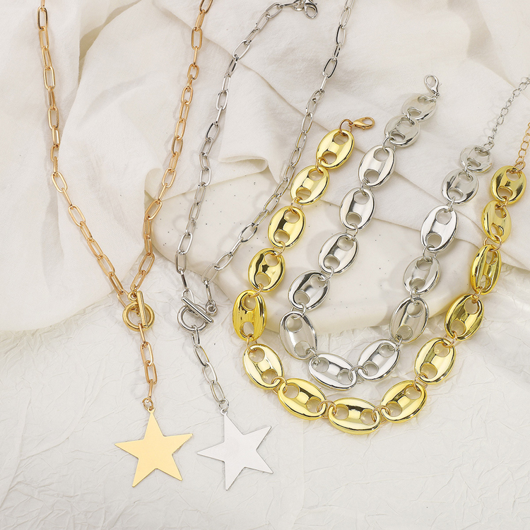 Home Necklace Premium Sense of Design Metal Star Pendant Necklace Fashion Personality Baita Pig Nose Chain Stacked Women’s Necklace