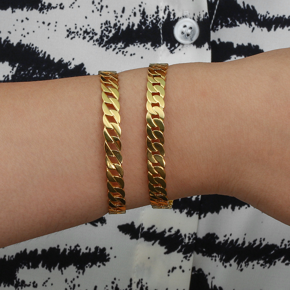 New Two-tone Stainless Steel Cuban Bracelet 18K Pvd Coating Waterproof Non-fading Fashion Jewelry Bracelet