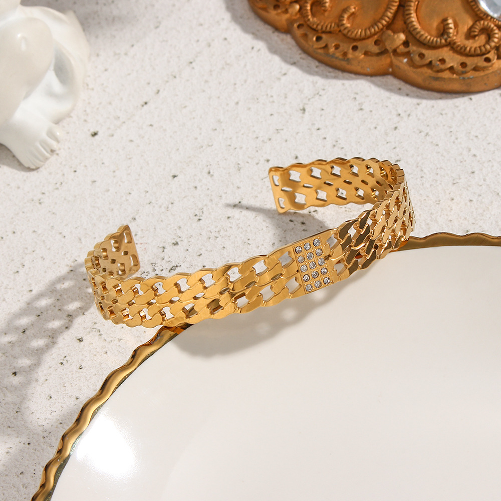 Fashion Natural Stone Hollow Stainless Steel 18K Gold Open Bracelet Does Not Lose Color Jewelry