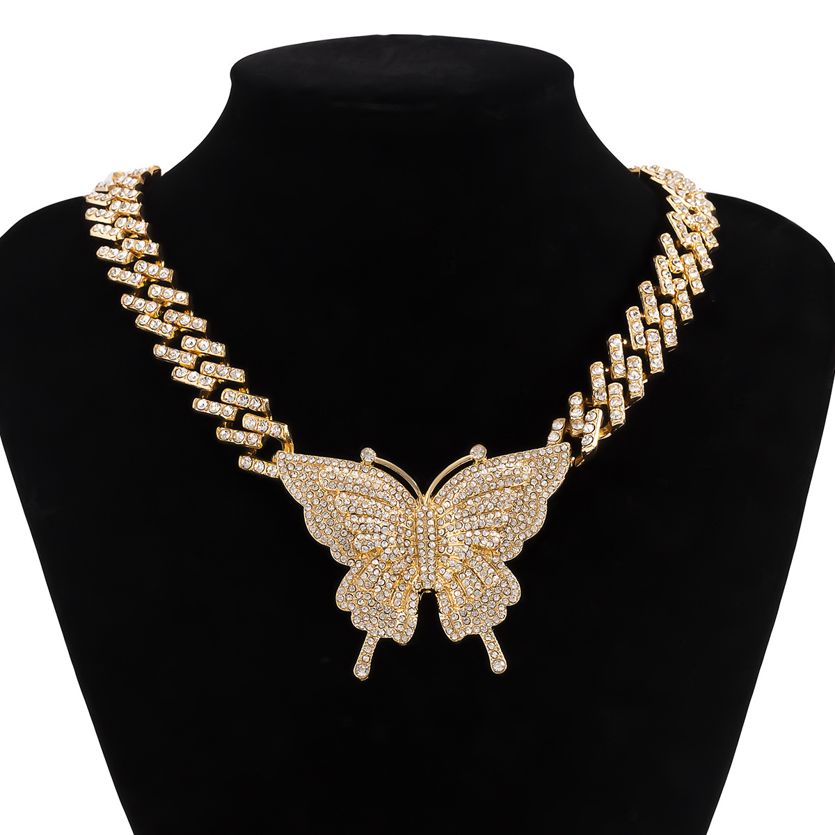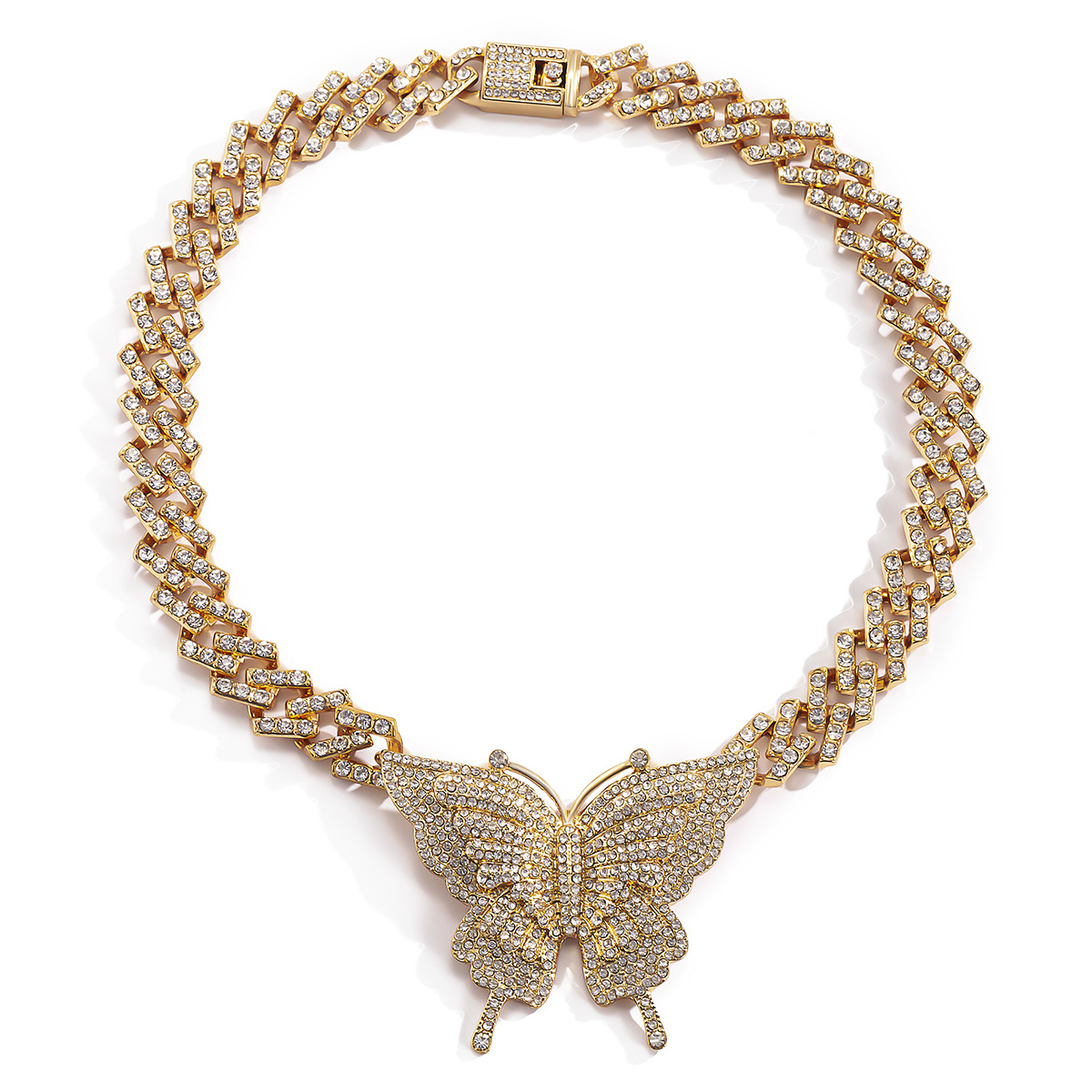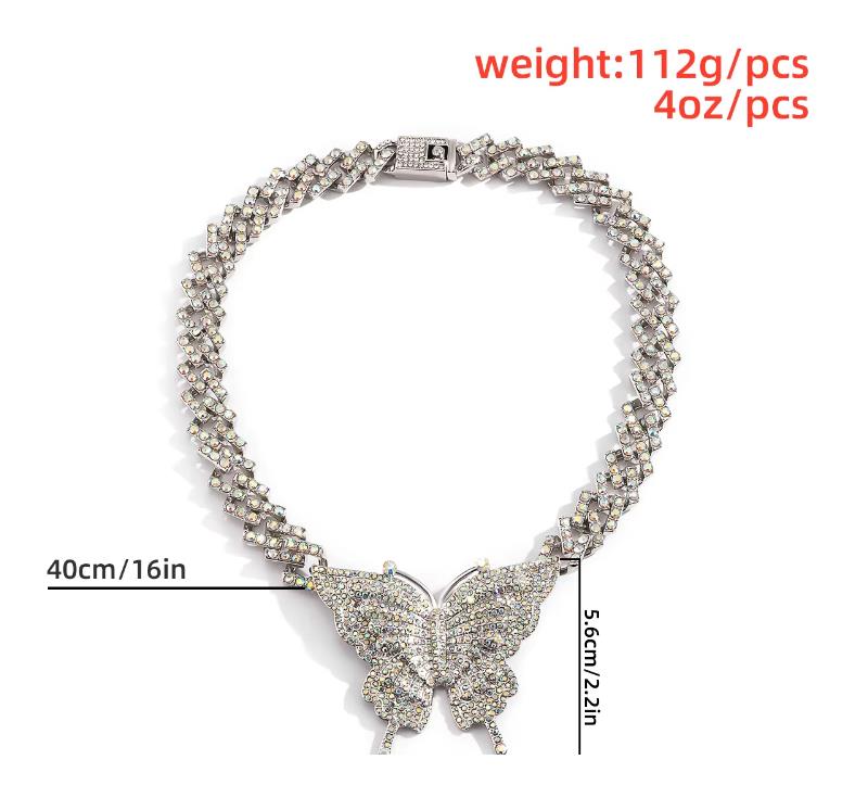 Home Necklace Retro Micro Full Diamonds Large Butterfly Neck Chain Cuba Alloy Chain Butterfly Necklace Charms