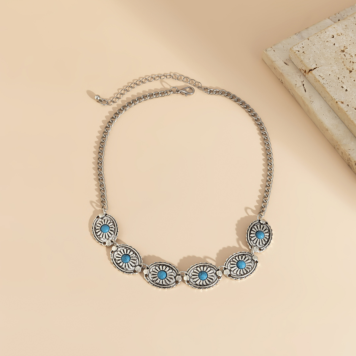 Be the first to review “Retro Turquoise Jewelry Bohemian Ethnic Fashion Metal Necklace Squash Blossom Turquoise Necklace Neck Accessories” Cancel reply