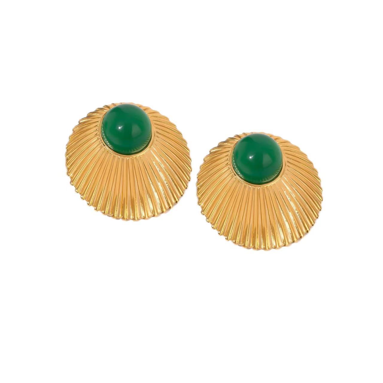 Stainless Steel Emerald Natural Stone Shell Ear Studs Retro Titanium Steel Earrings Accessories Jewelry