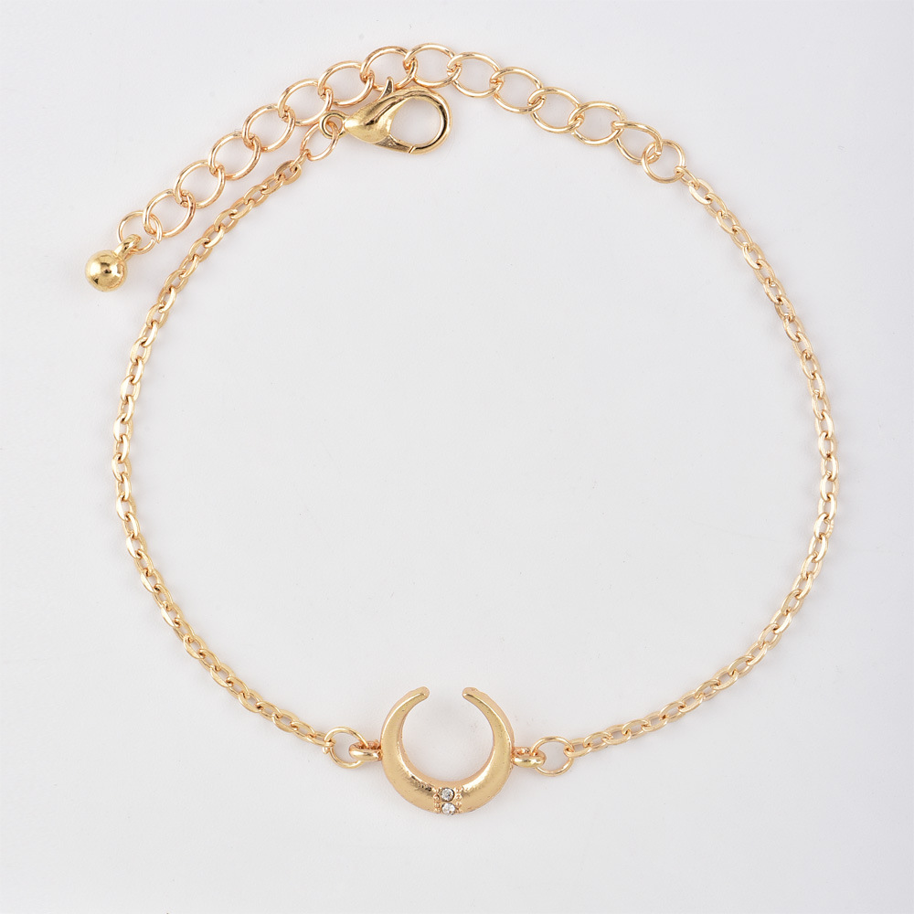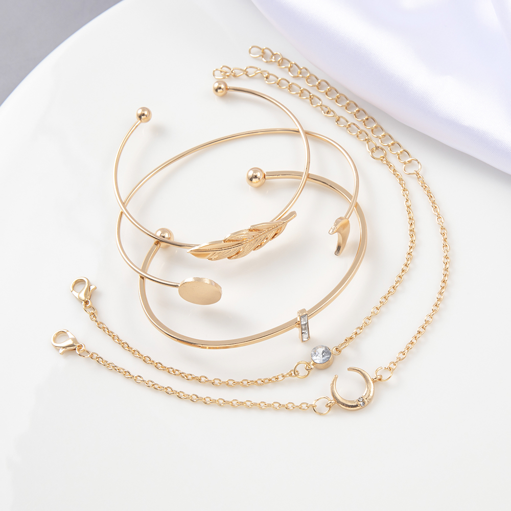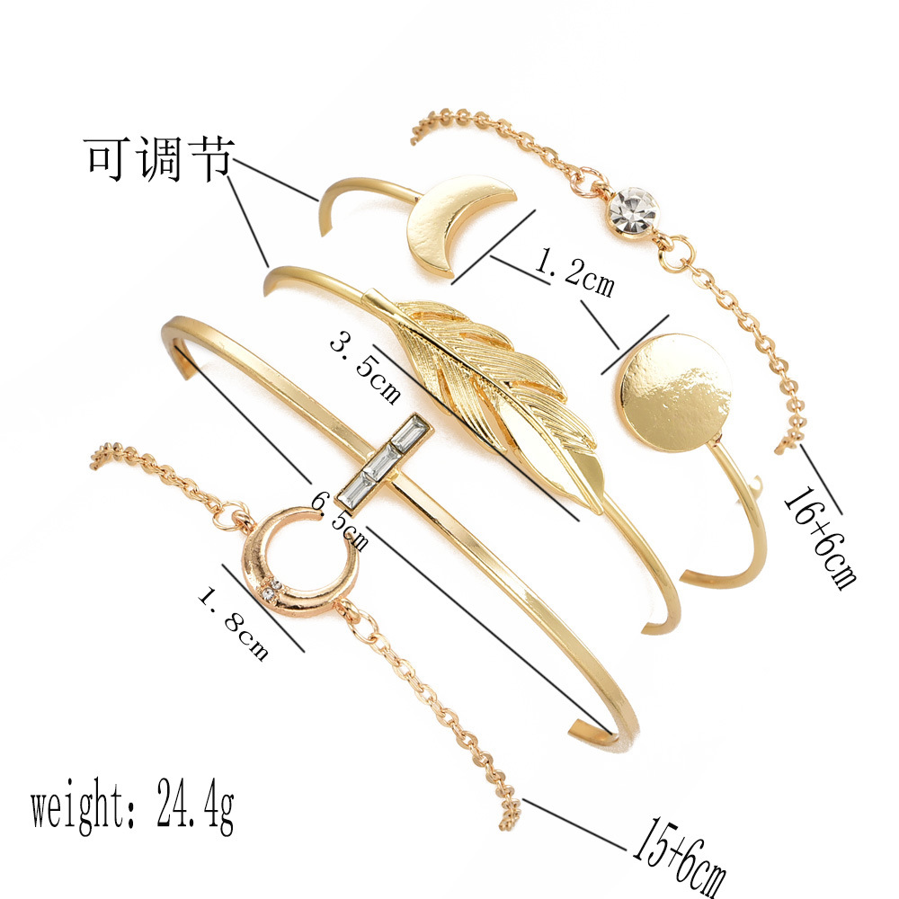 Home Bracelet Wholesale Fashion Sun Moon Feather Gold Chain Link Jewelry Set Crystal Geometric Bracelet for Lovely Girl