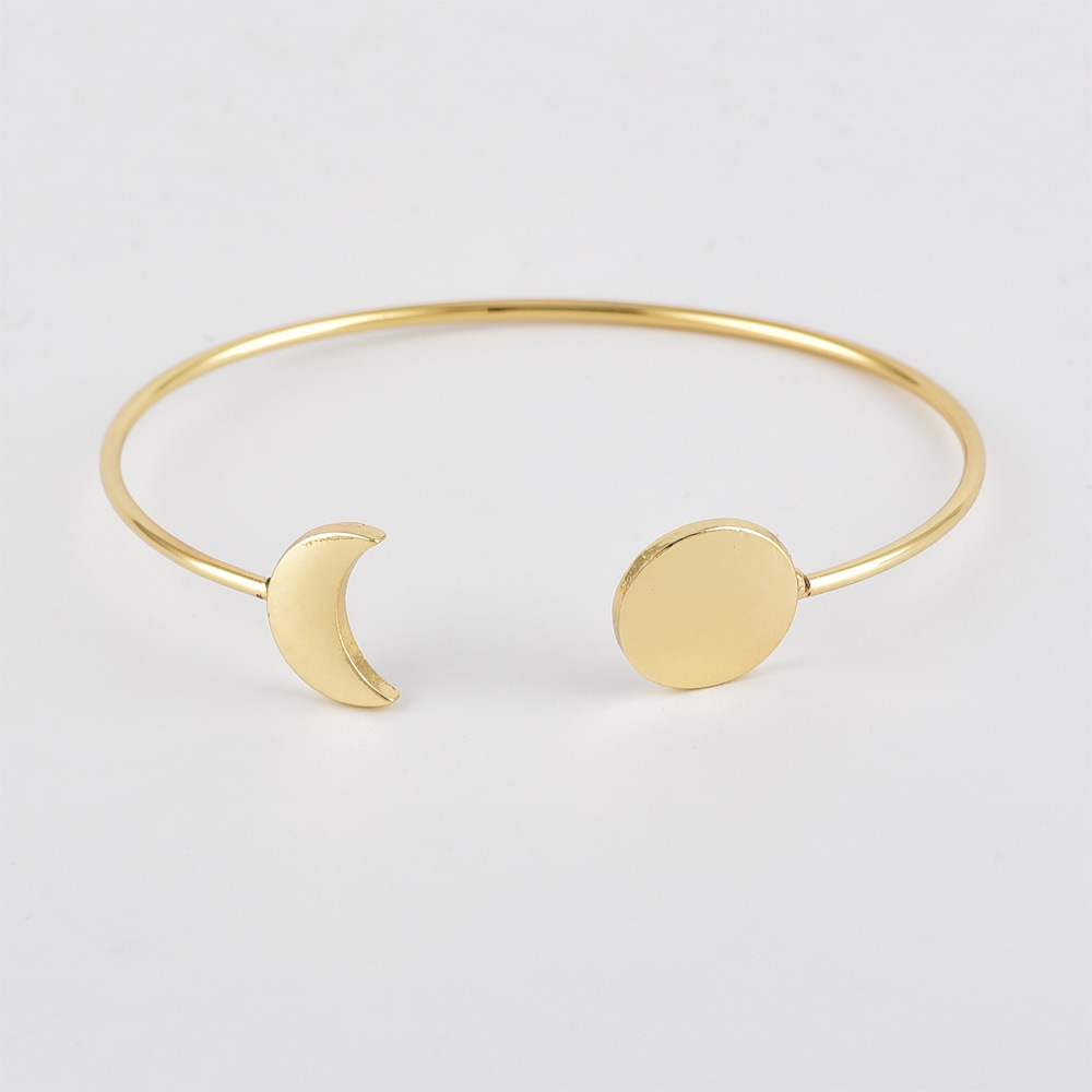 High-End 18K PVD Gold Plated Stainless Steel Crescent Moon C Cuff Waterproof Tarnish-Free Chunky Bracelet Bangle Fashion Jewelry